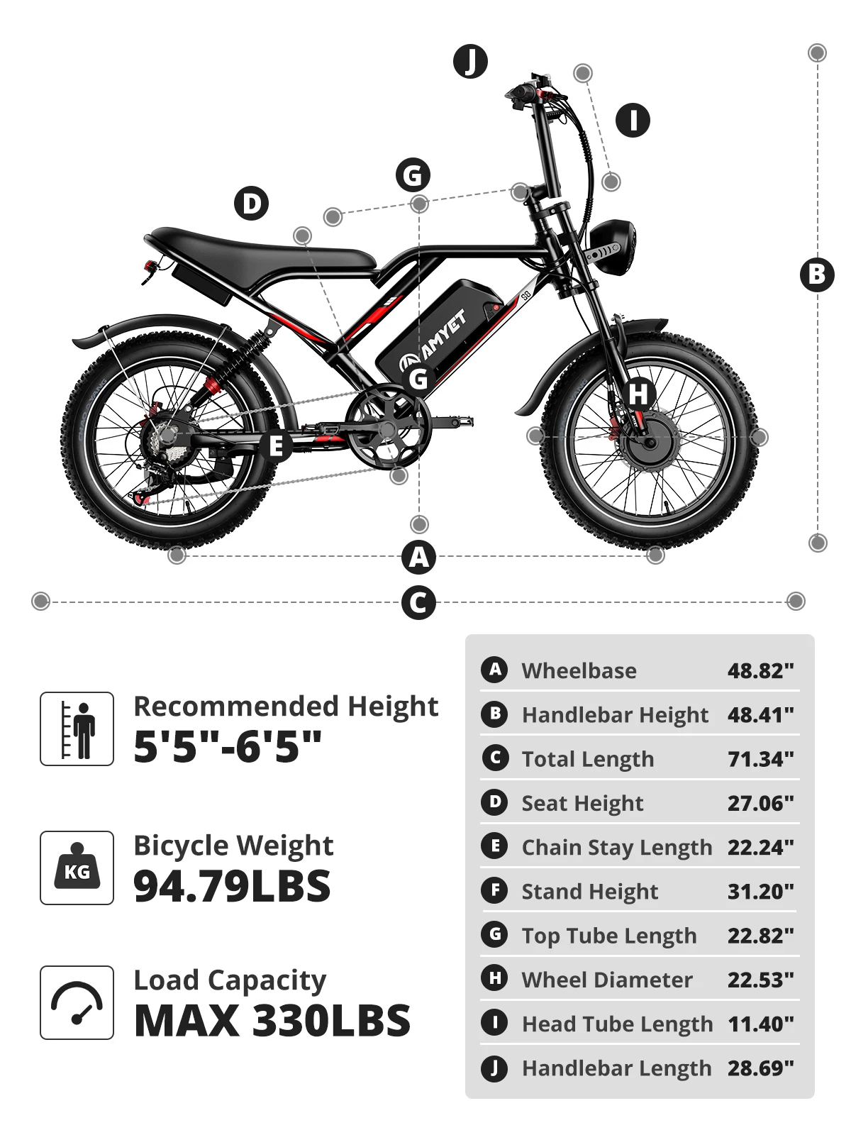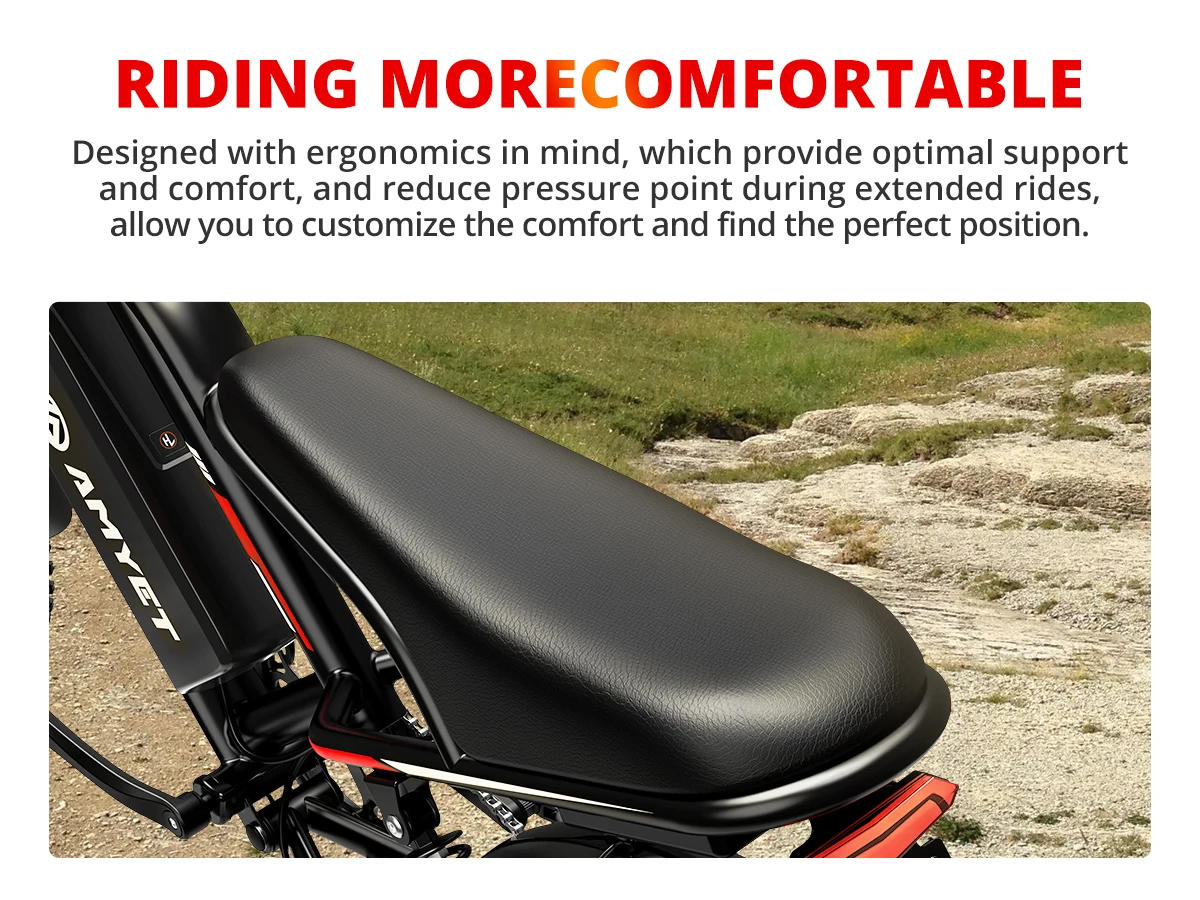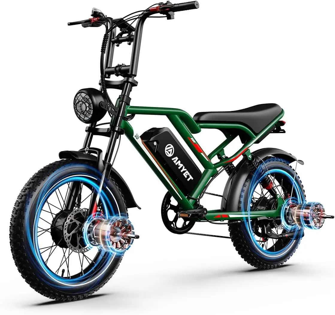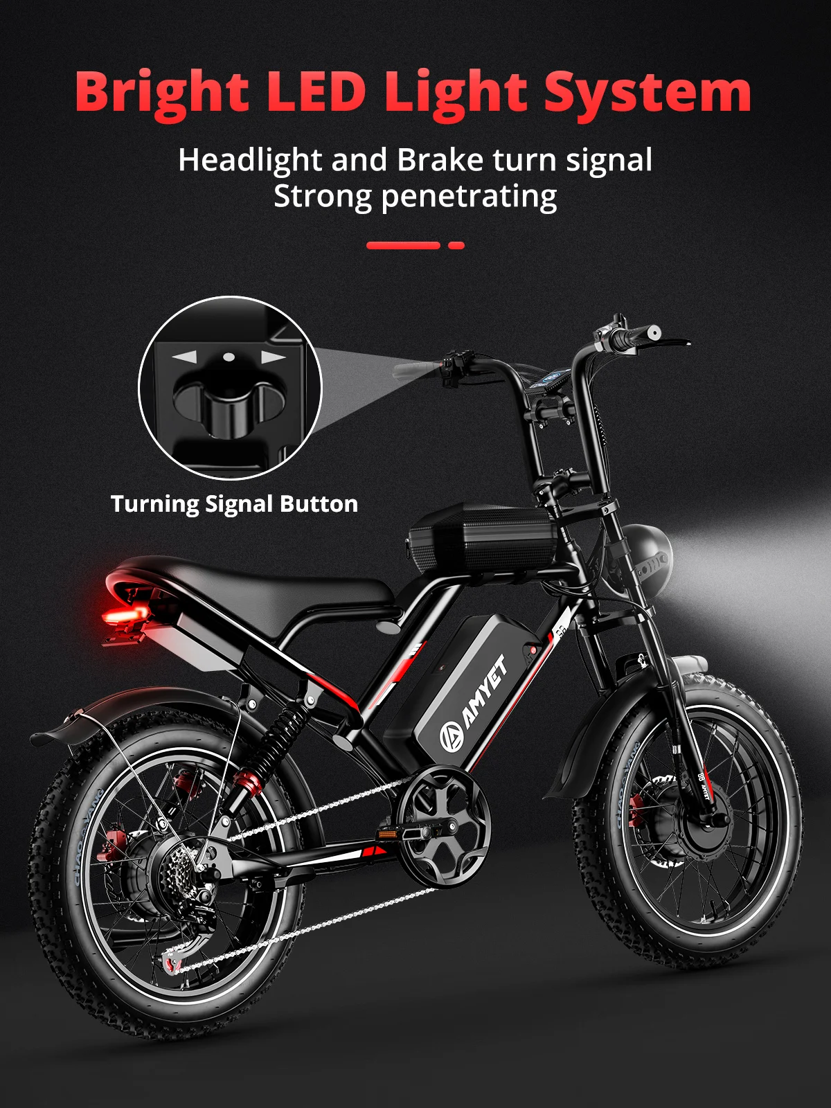 The AMYET S8 is an absolute blast to ride. The 2000W dual motor system gives it tons of torque, and the 20-inch fat tires make it feel agile yet planted on rough terrain.