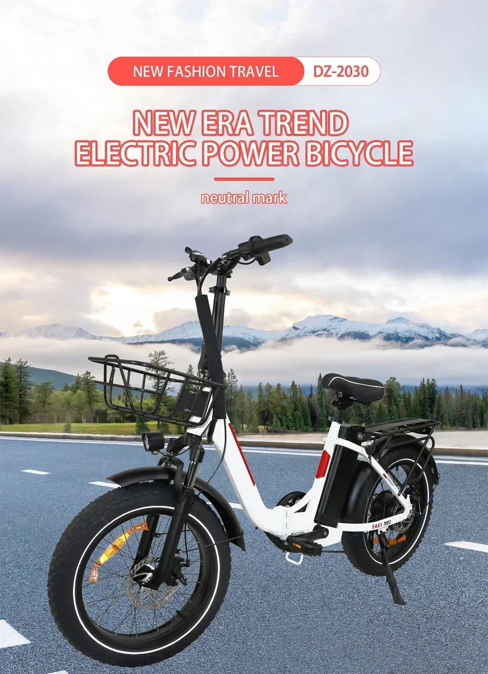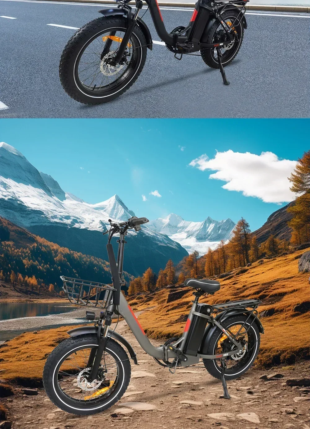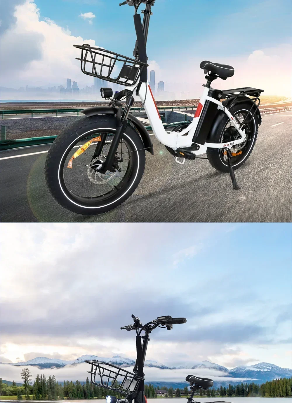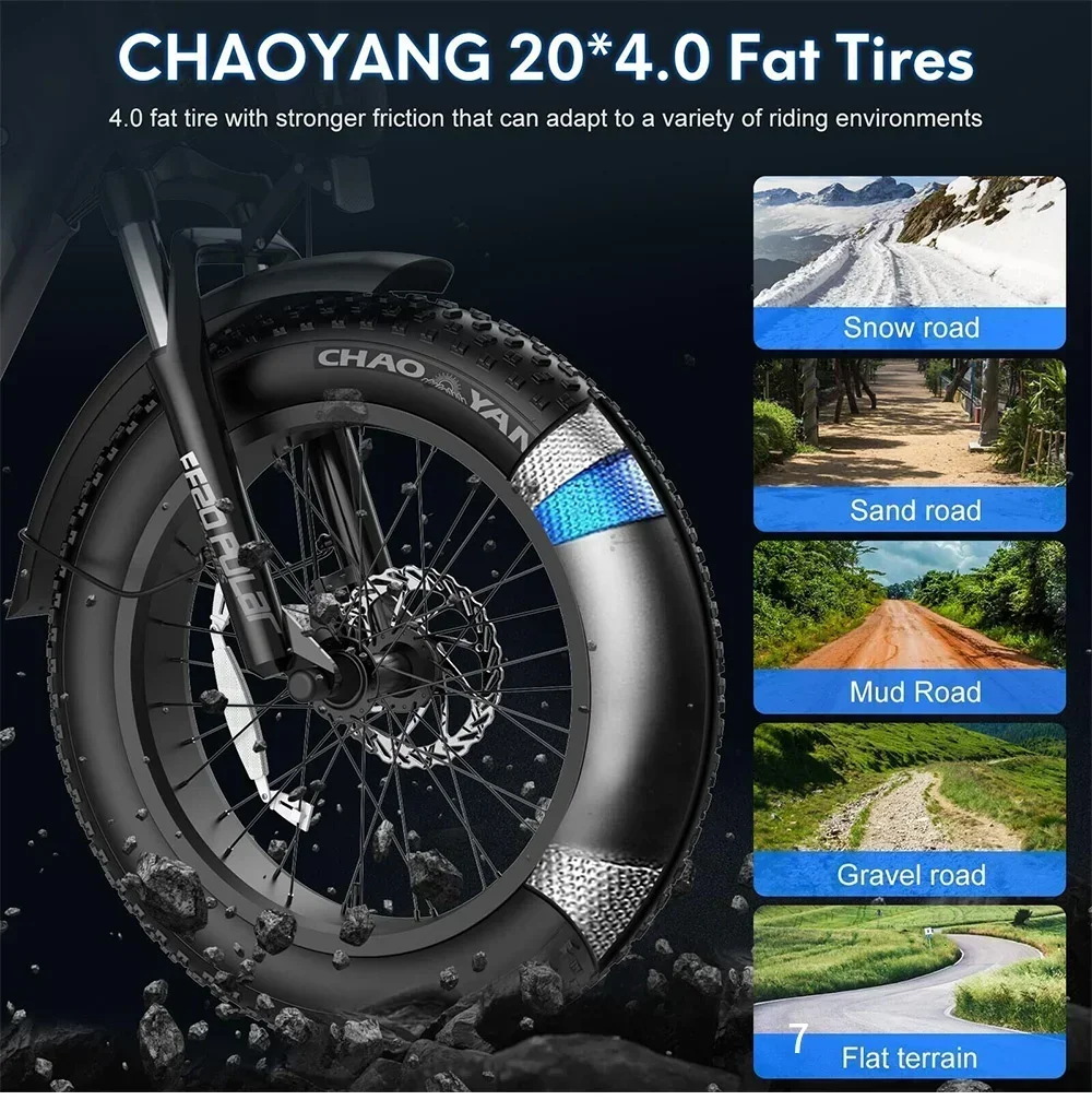 20×4.0 inch fat tires ensure stability on sand, snow, gravel, and pavement. Paired with an aluminum alloy front fork and solid frame construction, the BLJ e-bike provides a smooth and comfortable ride even on uneven terrain.