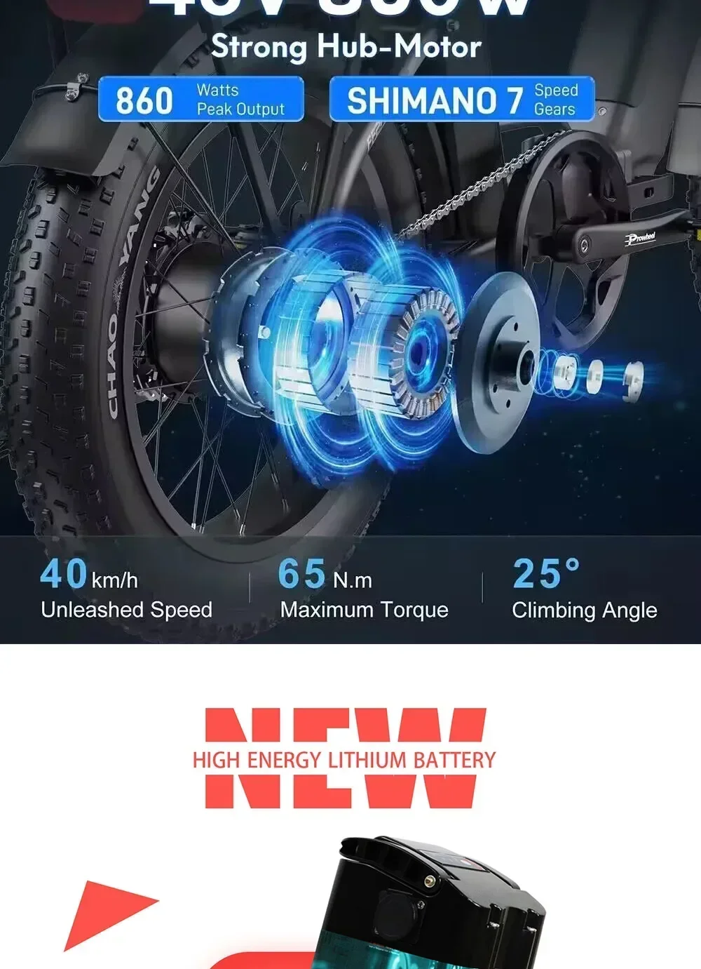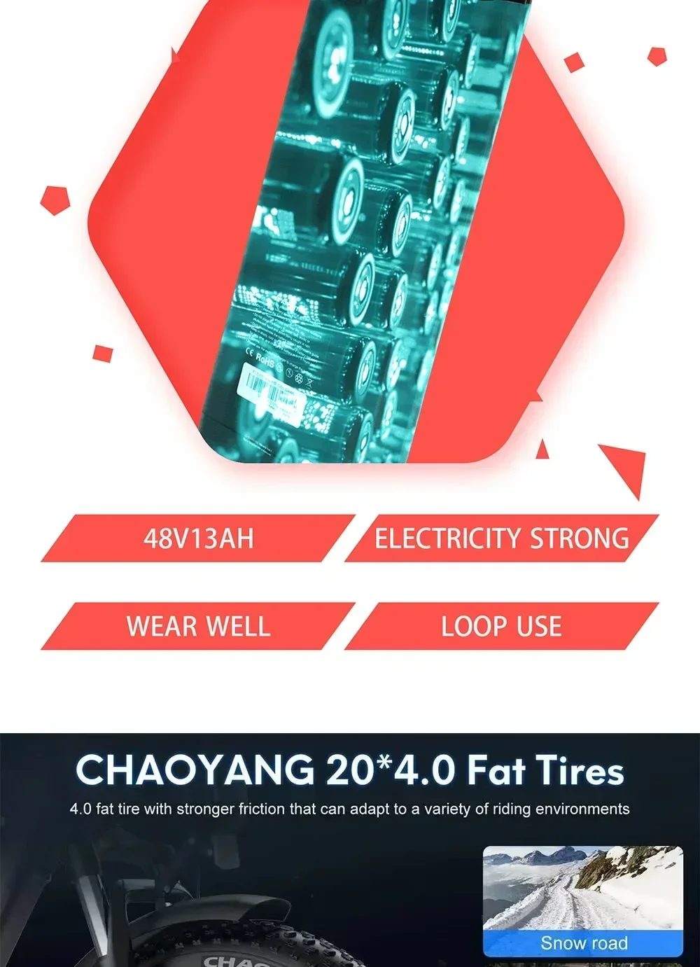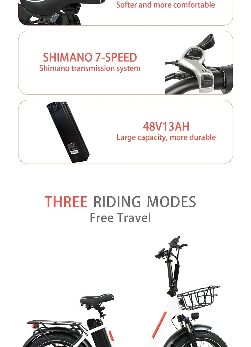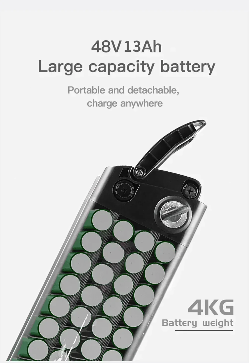 - Battery: 48V 13Ah removable lithium battery