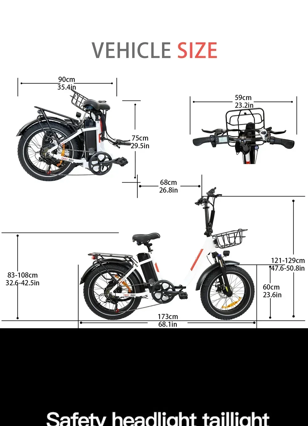 - Tires: 20 x 4.0 fat tires