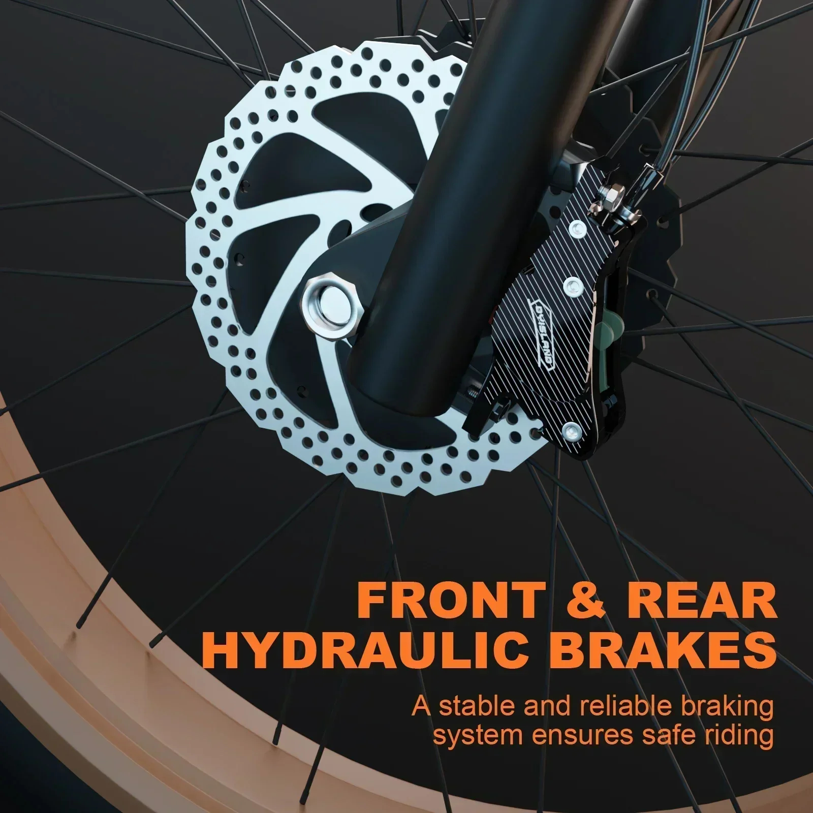 Heavy-duty hydraulic disc brakes provide strong, responsive stopping power—even at high speeds or on steep descents. Enjoy full control with precise braking in every environment.